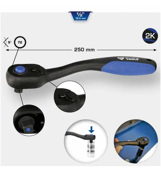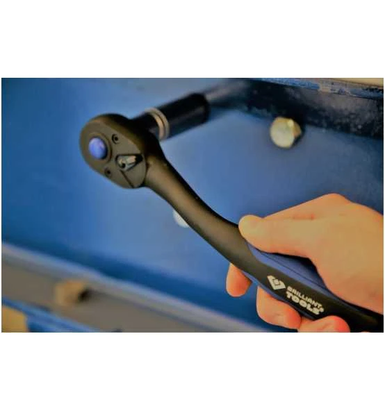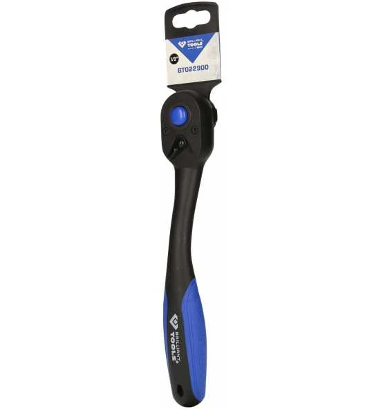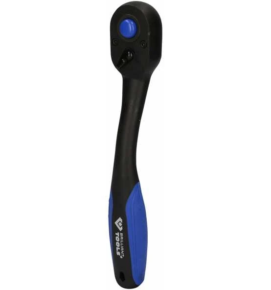 Der BRILLIANT TOOLS 1/2 Zoll Umschaltknarre BT022900 ist für Profis und Hobbyhandwerker geeignet. Dank der Druckknopfauslösung können Steckschlüsseleinsätze und Verlängerungen schnell und komfortabel gelöst oder aufgesteckt werden. Die Druckknopfauslösung verhindert zudem ein ungewolltes Lösen einer Steck-Verbindung. Durch die schlanke Ausführung ist ein Zugriff durch die Umschaltknarre auch in beengten Umgebungen möglich. Der 2-Komponentengriff unterstützt die Griffigkeit optimal und gewährleistet höchste Ergonomie in der Anwendung. Durch die Ratschenfunktion mit einer Feinverzahnung von 72 Zähnen und einem Rückschwenkwinkel von 5° können metrische Schraubfälle auch in engsten Räumen zeitsparend durchgeführt werden. Für die Langlebigkeit sind die Umschaltknarren aus langlebigem Chrom-Vanadium-Stahl hergestellt.