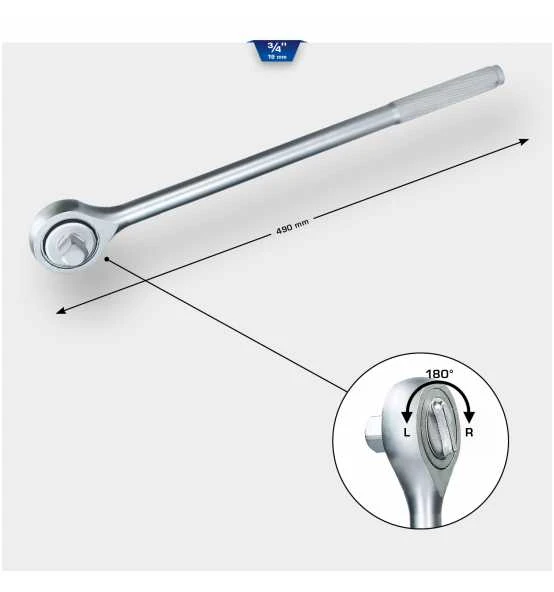 Die BRILLIANT TOOLS 3/4 Zoll Umschaltknarre BT025900 ist für Profis und Hobbyhandwerker geeignet. Dank der Druckknopfauslösung können Steckschlüsseleinsätze und Verlängerungen schnell und komfortabel gelöst oder aufgesteckt werden. Die Druckknopfauslösung verhindert zudem ein ungewolltes Lösen einer Steck-Verbindung. Durch die schlanke Ausführung ist ein Zugriff durch die Umschaltknarre auch in beengten Umgebungen möglich. Durch die Ratschenfunktion mit einer Verzahnung von 24 Zähnen und einem Rückschwenkwinkel von 15° können metrische Schraubfälle auch in engsten Räumen zeitsparend durchgeführt werden. Für die Langlebigkeit sind die Umschaltknarren aus langlebigem Chrom-Vanadium-Stahl hergestellt.