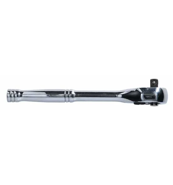 Die BRILLIANT TOOLS Umschaltknarre BT021995 mit Metallgriff und Umschalthebel hat eine Gesamtlänge von 20 cm. Durch die Feinverzahnung mit 100 Zähnen wird ein niedriger Rückholwinkel von 3,6° ermöglicht. Der extrem geringe Rückholwinkel ermöglicht den Einsatz auch in engsten Platzverhältnissen. Der leicht versenkte Umschalthebel verhindert versehentliches Umschalten und schützt damit Ihre Finger und Gelenke. Zusätzlich ist die Knarre mit einer Nuss-Verriegelung ausgestattet, die ungewolltes Abfallen der Stecknuss verhindert. Die Kugelarretierung kann über den Auslöseknopf gelöst werden. Der Ratschenkörper besteht aus qualitativem Chrom-Vanadium-Stahl und gewährleistet eine besonders hohe Langlebigkeit.