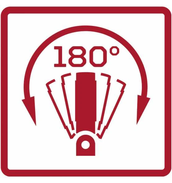 Knarrenkopf 180° schwenkbar, Arretierbar in 5 Positionen, Rechts-/Linkslauf durch Hebel umschaltbar, Druckknopfauslösung, Oberfläche matt verchromt