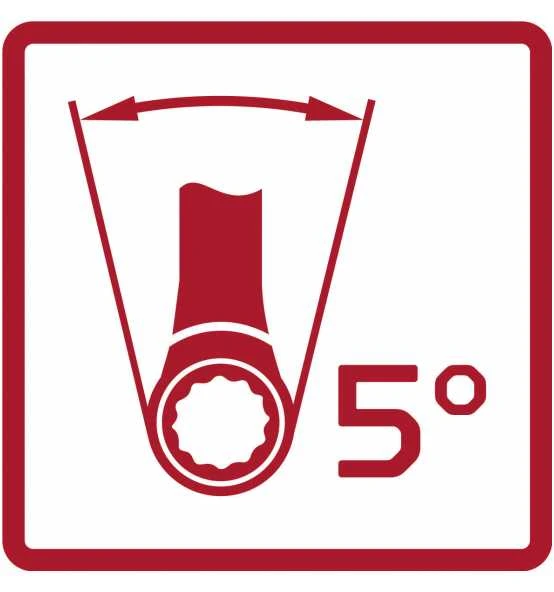 In Anlehnung an DIN 3113, ISO 3318, Gerade Form, Ratschenmechanismus mit 72 Zähnen, Rückschwenkwinkel 5°, Maulstellung 15°