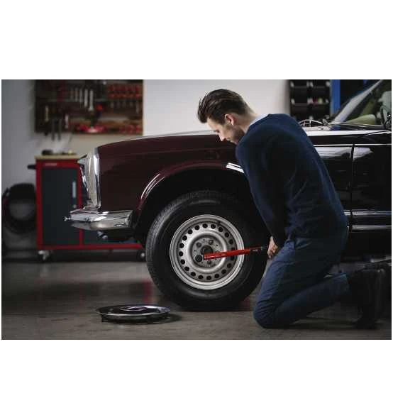 Für das kontrollierte Anziehen von Schrauben und Muttern, Kontrollierter und präziser Schraubenanzug von 5 bis 550 N·m, Für den kontrollierten Rechts- und Linksanzug, Rechtsanzug und Linkanzug durch Umstecken des Durchsteckvierkants, Schneller Voranzug der Verschraubung über den gerändelten Pilzkopf