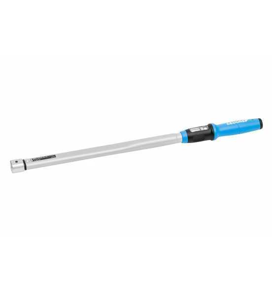 Einsatz:, Kontrollierter Schraubenanzug im Bereich von 80 – 400 N·m / 60 -300 lbf·ft, Verstellbarer, auslösender und robuster Rohrdrehmomentschlüssel mit Rechteckaufnahme für Industrie und Handwerk, Ausführung:, Klassifiziert nach DIN EN ISO 6789-2:2017 Typ II Klasse A, Kalibriert auf eine maximal zulässige Abweichung von +/- 3 % und somit präziser, als die in der Norm geforderten +/- 4 %, Inkl. rückführbarem Prüfzertifikat (DIN EN ISO 6789-2:2017), Für den kontrollierten Rechts- und Linksanzug (Einsteckwerkzeug umstecken für Richtungswechsel), Rechteckaufnahme 14×18 mm inkl. Auswerfhilfe, Robuste, matt gepulverte Stahlrohr-Konstruktion mit hochwertigen Kunststoffteilen, Neuer ergonomischer Griff, geformt nach der natürlichen Greifhaltung der Hand, Deutlich erkennbare und fühlbare Handzentrierhilfe sowie Kalibrierhilfe in der Griffmitte, Deutlich erkennbare und fühlbare Handzentrierhilfe sowie Kalibrierhilfe in der Griffmitte, Doppel-Skala N·m / lbf·ft mit Nonius (N·m), vergrößertes Sichtfenster schützt vor Abrieb und Verschmutzung, Mit Noniusskala für N·m Hauptskala zur Einstellung von Skalenzwischenwerten; lbf·ft Einstellung nur über Hauptskala, Vertikale Ausrichtung der Skala, Drehmomenteinstellung dadurch Links- Rechtshänder geeignet, Skalenstrich direkt über der Skala positioniert, verhindert Ablesefehler (Parallaxefehler), Einheiten-Beschriftung im Skalenrahmen integriert und über Sichtfenster gegen Abrieb geschützt,, Präzise Absprungmechanik erzeugt ein deutlich fühl- und hörbares Auslösesignal bei erreichen des eingestellten Drehmomentwertes, Inkl. Wegrollsicherung, verhindert Wegrollen wenn das Werkzeug abgelegt wird