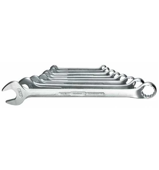 DIN 3113 B, ISO 3318. Aus GEDORE Vanadium Stahl 31CrV3. Mattverchromt, Ringseite flach gekröpft und schlank, Maulstellung 15°. Ring poliert.