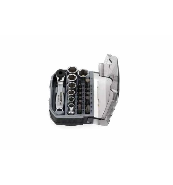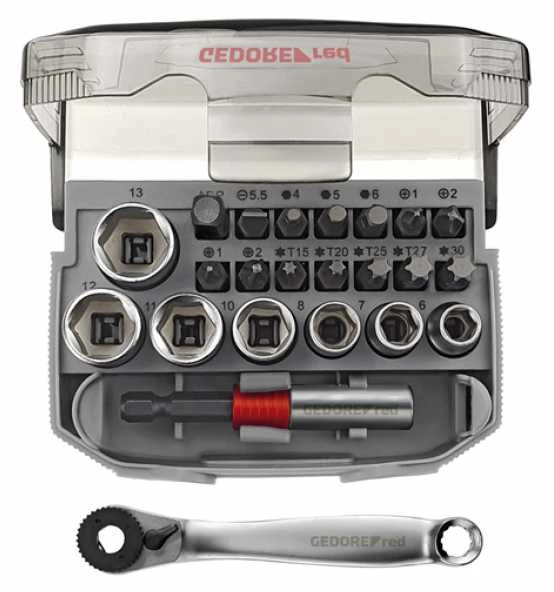 Verbindungsvierkant nach DIN 3120 – A 6,3, ISO 1174, mit Kugelarretierung, Innenvierkantantrieb nach DIN 3120 – C 6,3, ISO 1174, mit Kugelfangrille, Steckschlüsseleinsatz 1/4″, 6-kant, metrisch, kurz, Ausführung nach DIN 3124, ISO 2725, Bithalter mit Magnet 1/4″, maschinenbetätigt, Ausführung nach DIN 7427, Antriebsadapter 1/4″, zum Antrieb von Steckschlüssel- und Schraubendrehereinsätzen
