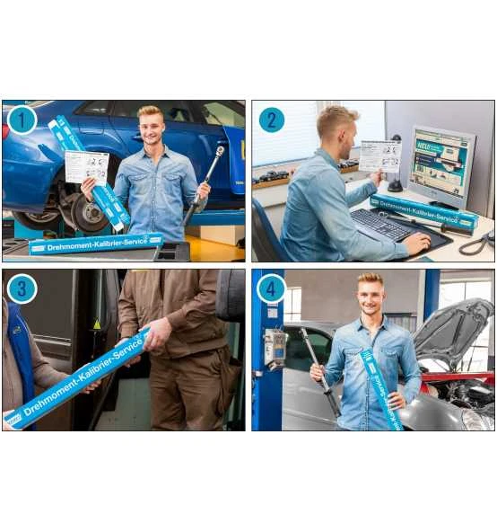 - Prüfplakette und Kalibrierschein oder Prüfzertifikat mit tatsächlich ermittelten Prüfwerten für Ihren Drehmomentschlüssel