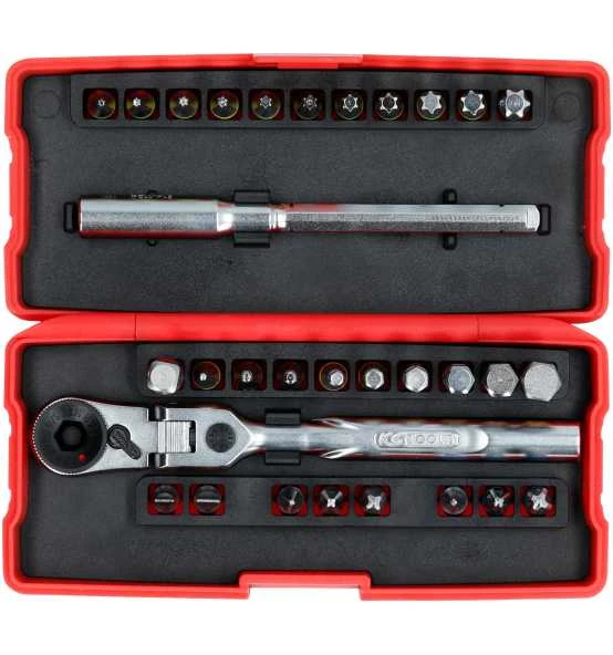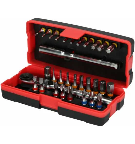 - präzise und ordentliche Anordnung der gängigsten 1/4″ Bits