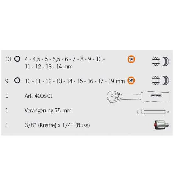 1/4″ + 3/8″ Durchschraubknarren Satz 25tlg