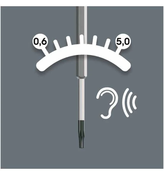 - Deutlich hör- und spürbares Überrasten beim Erreichen des eingestellten Drehmoments