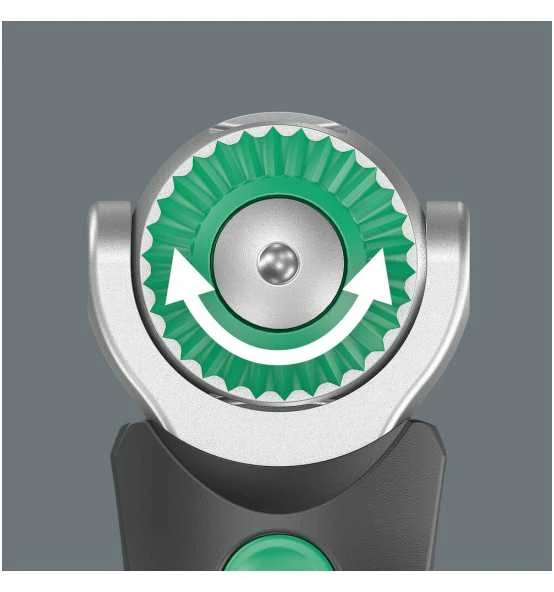 - Frei schwenkbarer Knarrenkopf mit 5 definierten Fixierungen