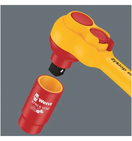 - 100 % stückgeprüfte und isolierte Zyklop Knarre, Nüsse und Verlängerungen für sicheres Arbeiten bis 1.000 Volt