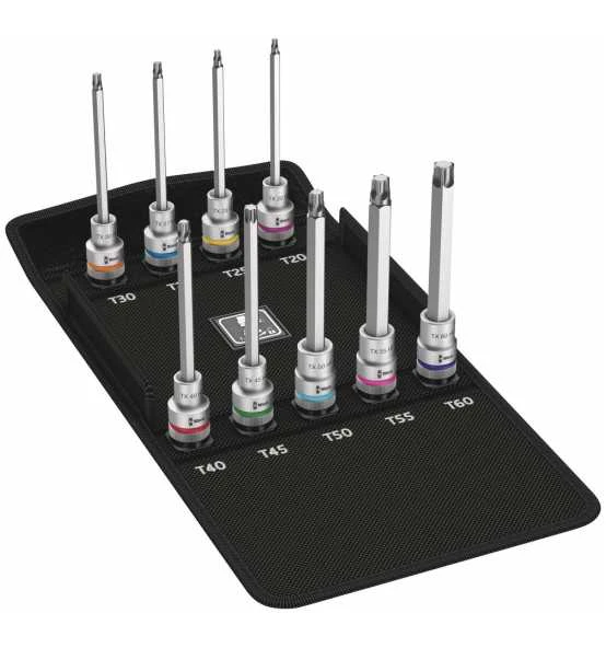Bitnuss-Satz TORX(r), mit Haltefunktion für besonders komfortables Schrauben mit reduzierter Gefahr des Schraubenverlustes beim Zuführen zum Werkstück.