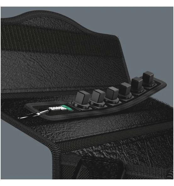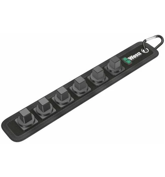 Robuster Textilgurt (Belt) im typischen Wera Design für 6 Nüsse (1/2″) auf engstem Raum.