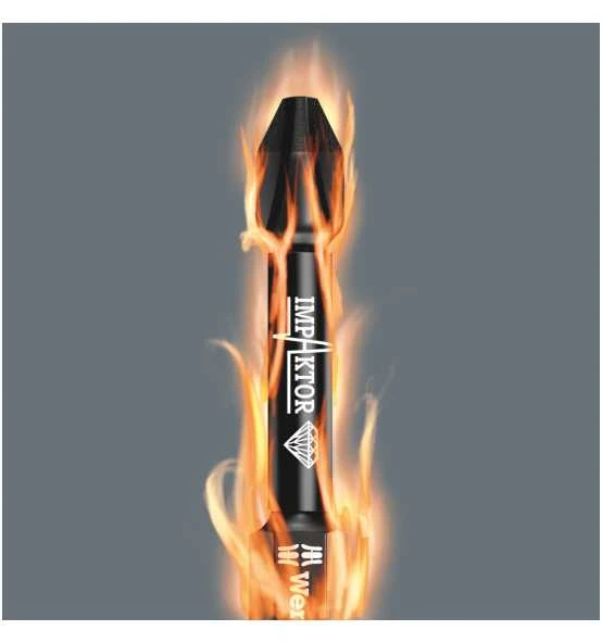 Erhöhter Reibungswiderstand durch raue Diamantpartikelbeschichtung auf der Bitspitze verhindern das Herausrutschen aus der Schraube.