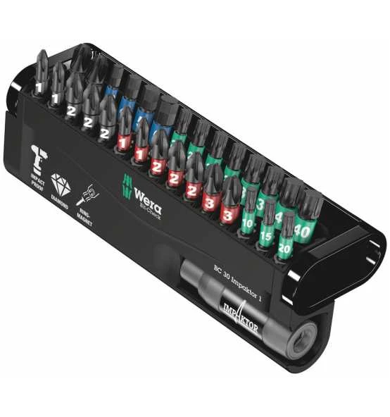 1 Impaktor Halter mit Sprengring und Ringmagnet, 29 Impaktor Bits.