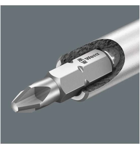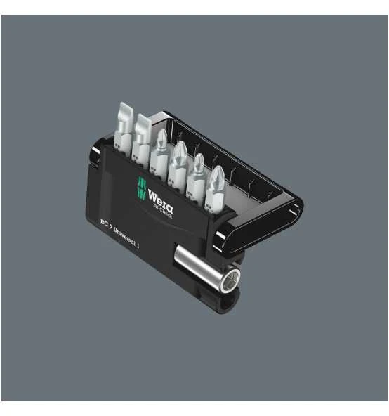 Inklusive Universalhalter mit starkem Dauermagnet für die Aufnahme von Bits mit 1/4″-Außensechskantantrieb.